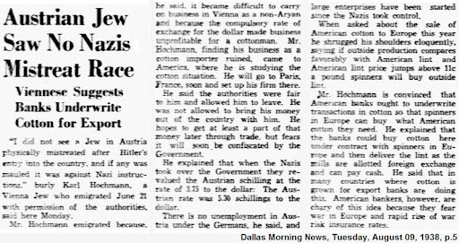 "I did not see a Jew in Austria physically mistreated after Hitler's entry into the country, and if any was mauled it was against Nazi instructions."
